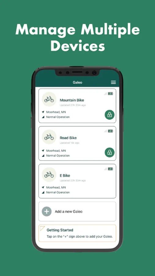 Every year over 2 million bikes are stolen in North America alone. Less than 5% of those are ever returned to their owners. Galeo is here to help you put an end to bike theft in your community today! When paired with the Galeo anti-theft device, Galeo will alert you if your bike moves without your permission. If your bike is stolen, activate Galeo's audible alarm, right from your phone, and track its location with Galeo's built in GPS and LTE connection. Avoid false alarms and unnecessary alerts with Smart Commute and gain piece of mind today. Because, it's your bike. Keep that way!