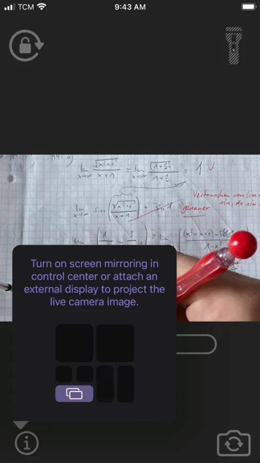 Tageslicht lets you put your live camera image on external displays. Just connect a display or turn on screen mirroring and your camera image is shown without any borders or bars and in full resolution.