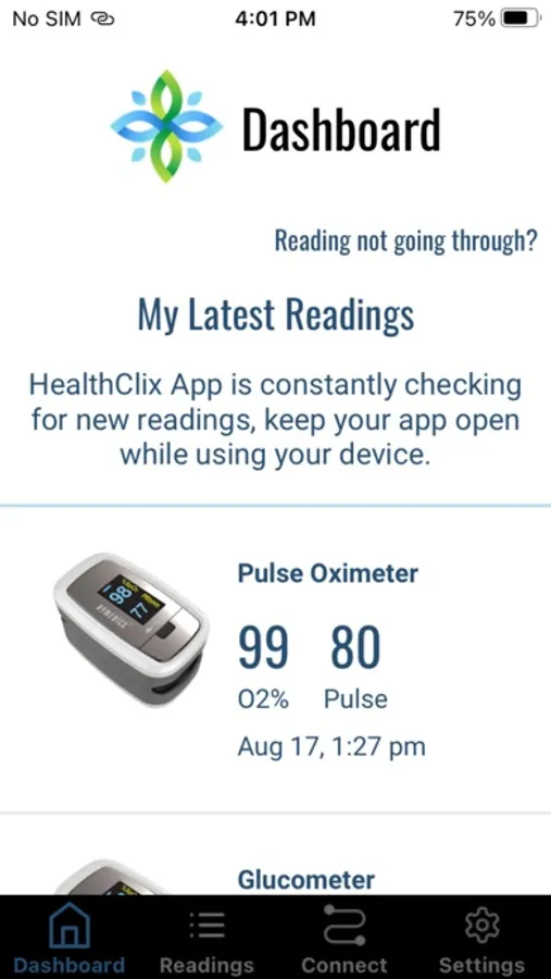 The HealthClix app easily allows you to take readings from your devices and sync them to your account.