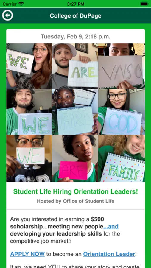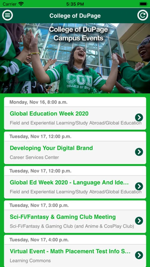 Use the College of Dupage Events app to find out what events are happening and find out how you can get involved on campus!