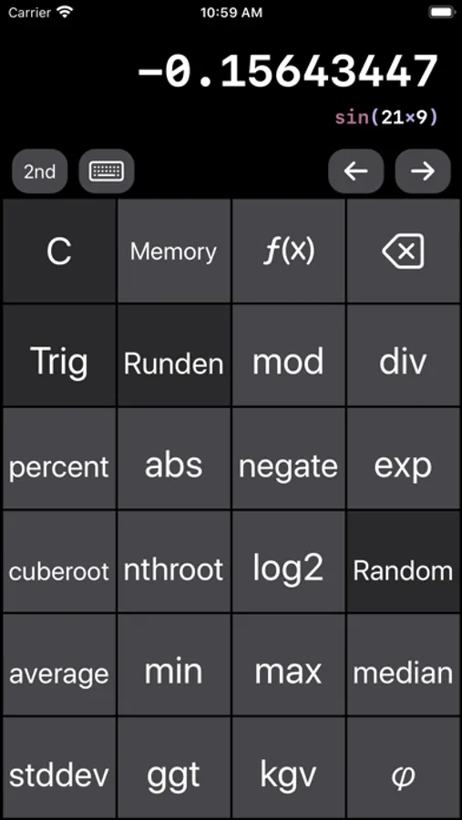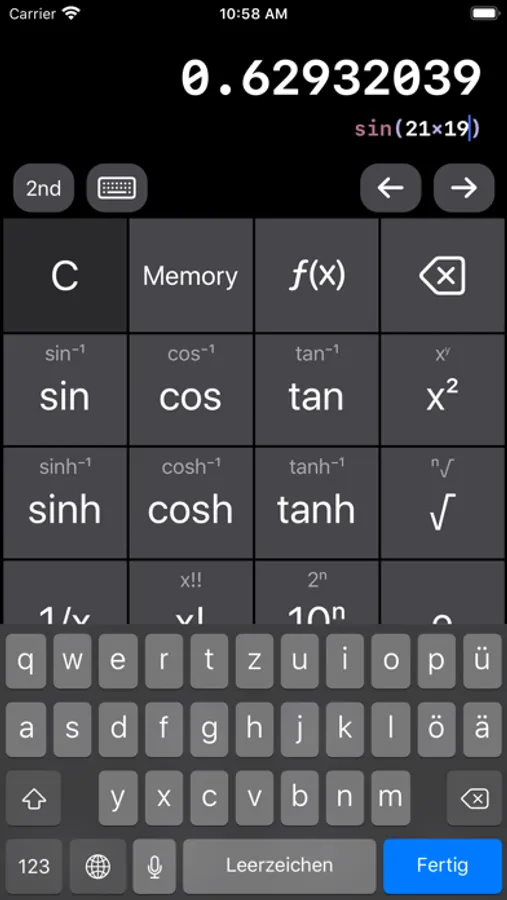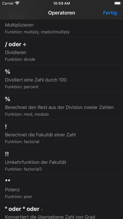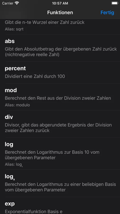 ◦ Alle üblichen Wissenschaftliche Funktionen von log bis pow, sqrt und factorial