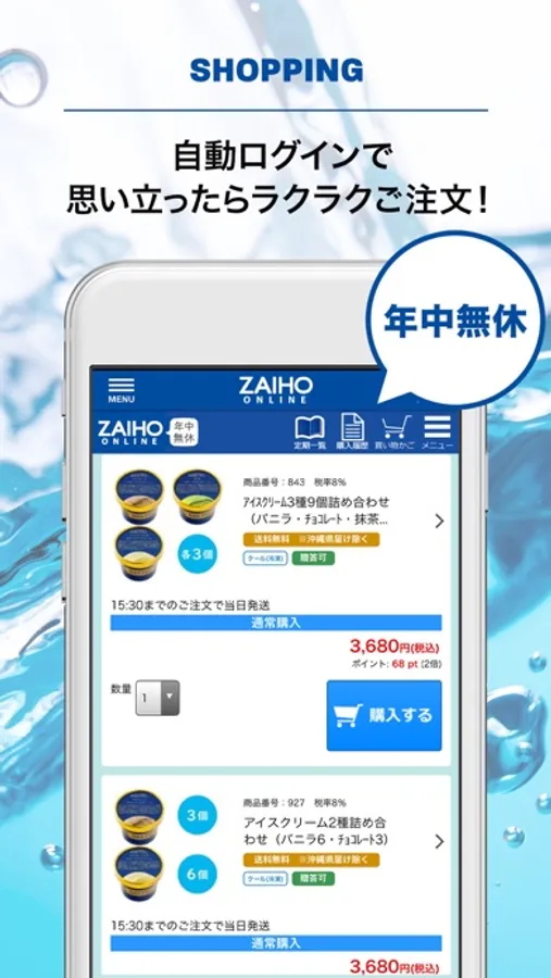 アプリ限定で自動ログイン機能がご利用でき、思い立ったらすぐアプリでご注文・ご確認できてとても便利!