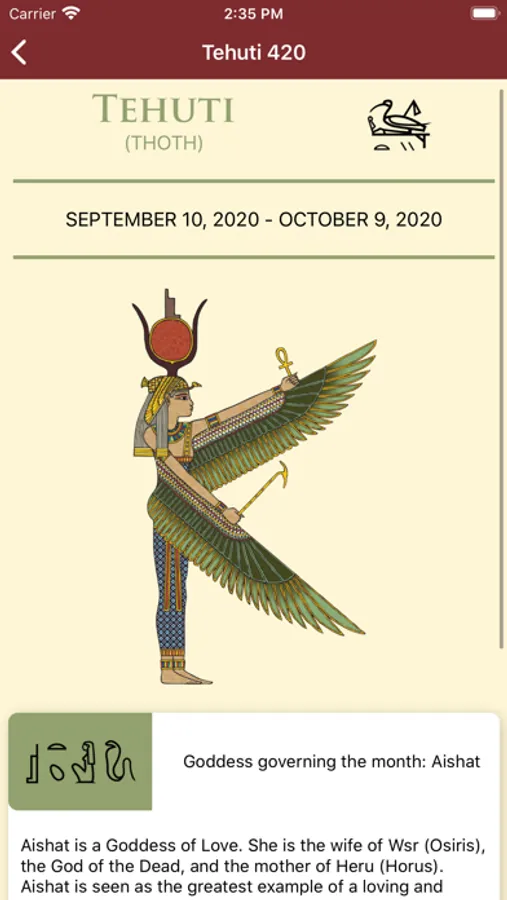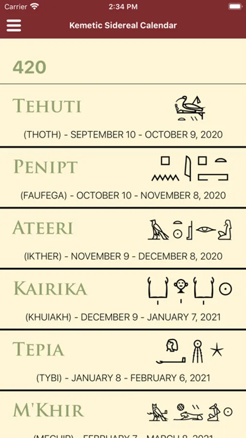 This Kemetic Calendar app will syncronise with your phone's calendar, import your events, and permit you to schedule events. Learn about the Divinities which rule over each month, as well as follow instructions on how to observe the Holy Days which have been associated with this calendar for thousands of years.