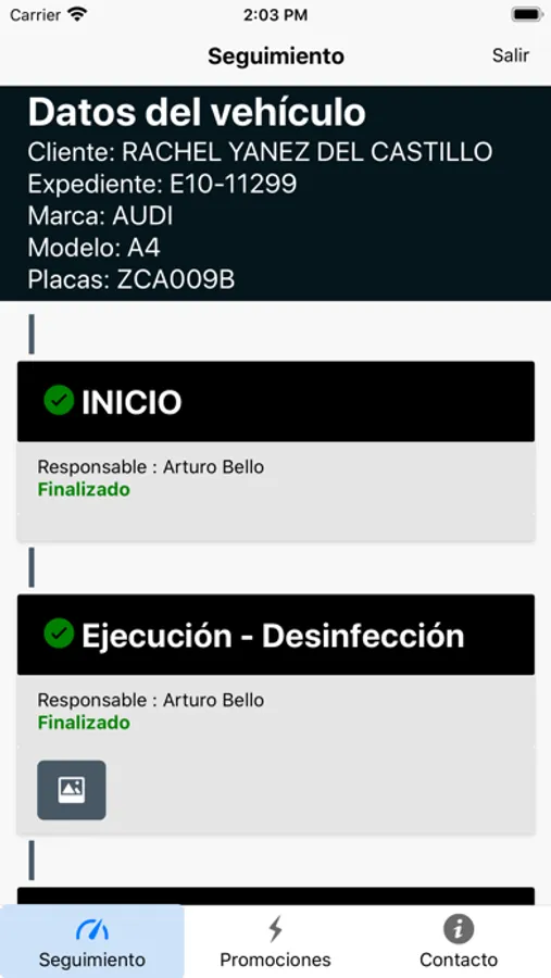 Si solicitas cambio de aceite, en esta aplicación podrás ver cuándo lo hagan, si solicitas una sanitización y estética de tú vehículo podrás ver fotos y vídeos de cuando estén realizando el trabajo.