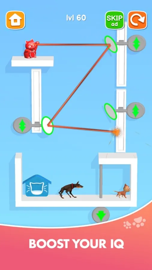 Unbelievable dangers and many enemies await you. Beware of cunning dogs that just want to bite a cat by the tail, sharp spikes can injure paws, and lasers can burn fur! Save the cat from mortal danger, escort him to his mom or to the shelter.