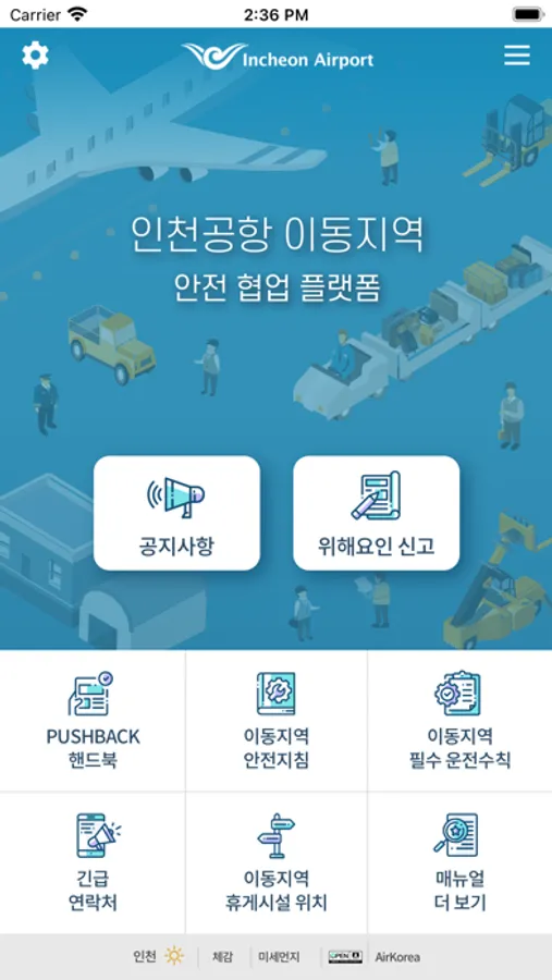 인천공항 이동지역 협업 안전 플랫폼 어플리케이션입니다.
