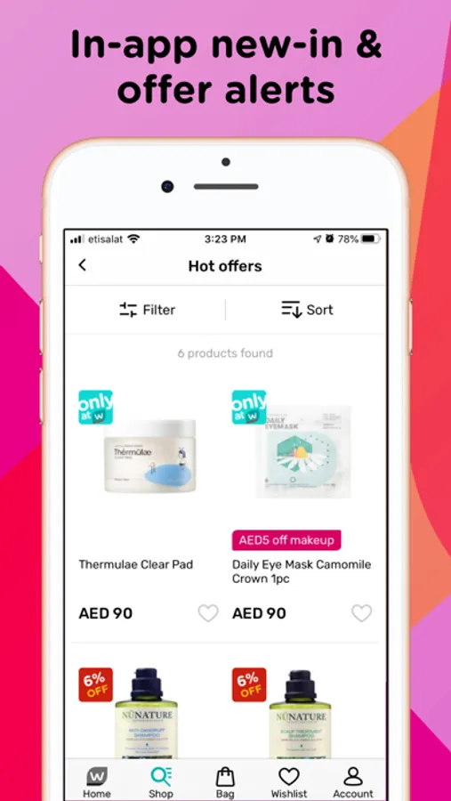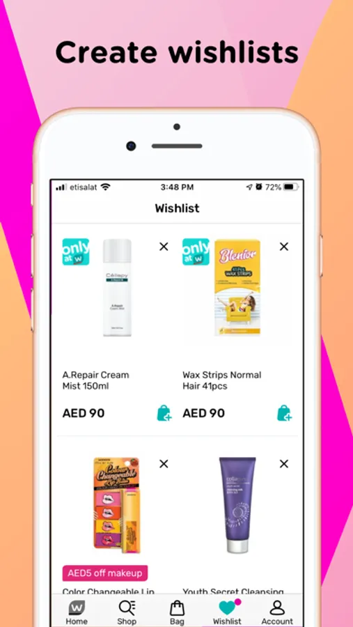 • Save all the products you love in your wishlist by simply tapping on the heart icon