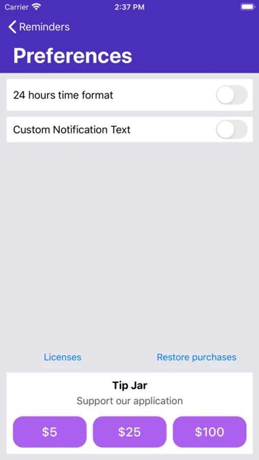 Simple and intuitive interface, one-touch to enable or disable reminders. Once turned on, the app will always remind you of important things.