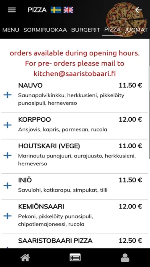 Saaristobaari delivery app brings fun in ordering pizza right on your phone. What makes us unique