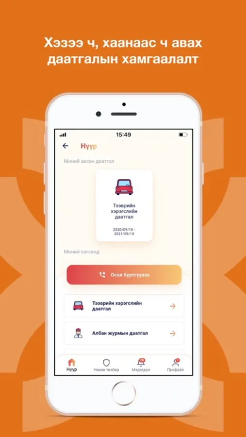 Ослын тохиолдолд 18001889 дугаарт мэдэгдсэнээр ослын зураг болон нөхөн төлбөр авах хүсэлтээ хэдхэн хоромд аппликэйшнээрээ илгээх боломжтой.