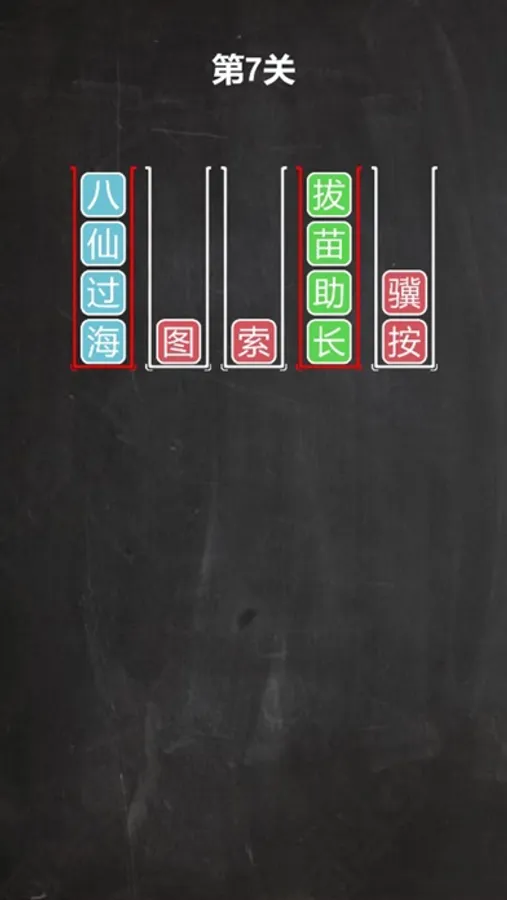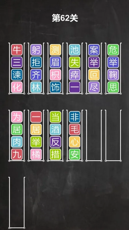 Idiom puzzle is an interesting and addictive puzzle game! Try to sort and arrange the color characters in the vertical frame until all the characters with the same color are left in the same box, and the Chinese characters in the same box are pronounced from top to bottom is an idiom.