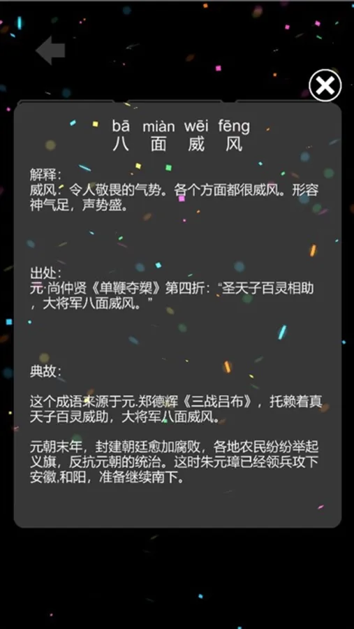 Easy and simple play to take you into the colorful idiom world, thousands of four character idioms waiting for you to unlock!!!