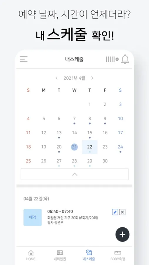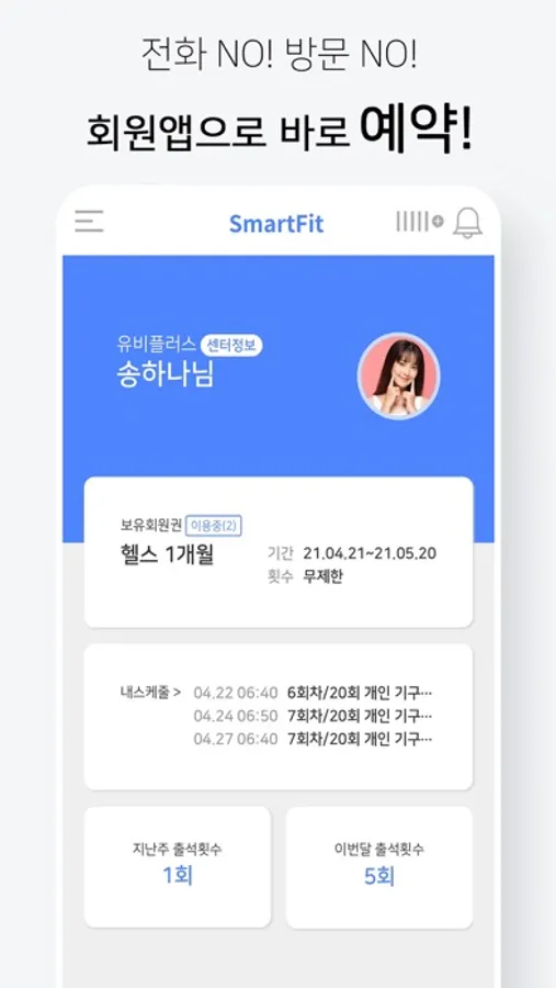 - 스마트폰에서 회원이 직접 원하는 시간에 예약할 수 있습니다.