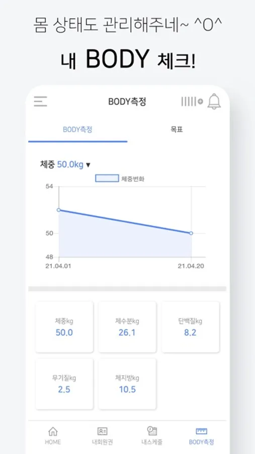 인바디 측정 기록을 그래프로 볼 수 있습니다.