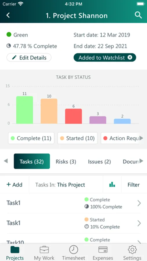 View and update key project data on the go including approvals, tasks, risks, issues and more.