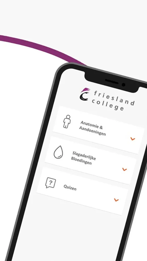 De app bevat 3 modules voor het stoppen van slagaderlijke bloedingen: Onderarm, Bovenarm en Bovenbeen.