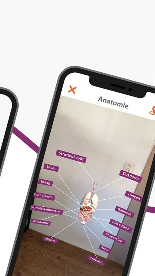 Bekijk de anatomie van de mens volledig in Augmented Reality en bepaal zelf of je de organen, bloedsomloop of bijvoorbeeld de spiergroepen wilt bekijken.