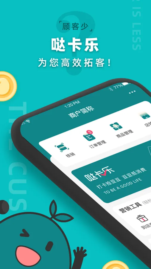 哒卡乐商家端APP,覆盖美食餐饮、生鲜果蔬、商超便利、图书影音、3C产品、房产租售、培训教育、丽人医美、装修建材、酒店文旅、服饰箱包、汽车租售等线下场景。独创“BDG精准数字营销模式”,提供“数字化、场景化、社交化”服务,打造集“营销推广、引流到店、增扩交易、数据分析、经营管理”为一体的运营平台。