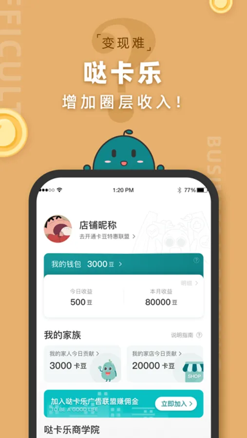 晚上12点,杂货店老板“通过哒卡乐邀请N个好友,赚了10000+卡豆”