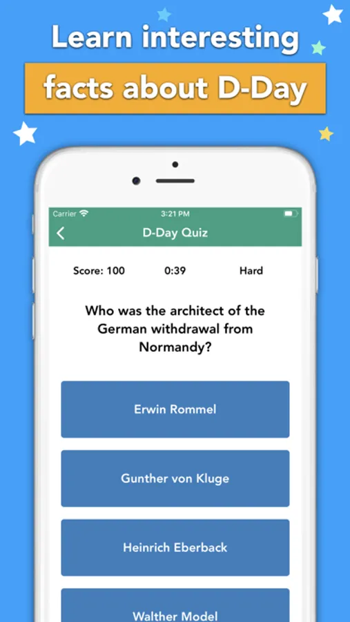 If you have any questions about this app or would like to request new features, please contact us at ddayquizgame@codeprostudios.com!