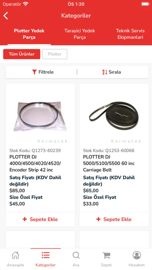 * Ürün kategorilerinde filtreleme yapabilirsiniz.