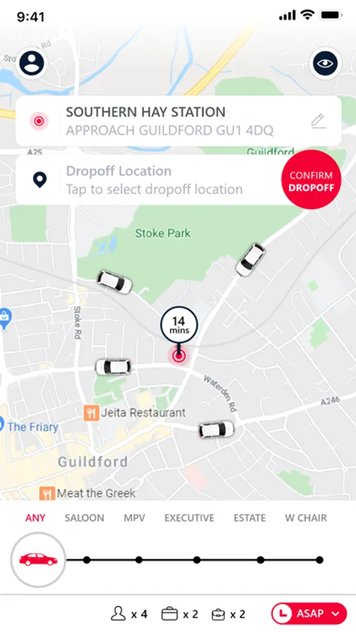 Our office staff have combined total of 75 years of experience in the taxi industry in Guildford, so we feel confident that our qualified and competent telephone staff will take care of all your bookings easily. We have an excellent track record in Guildford for providing a quality local service to all Guildfordians and neigbouring villages. Over the years we have built a caring, competent company that serves all our Guildford residents well.