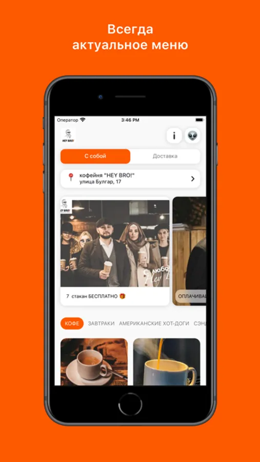 Приложение для любимых гостей кофейни "Hey Bro!" - адреса ближайших кофеен , информация по акциям и баланс накопленных баллов всегда под рукой. Мобильное приложение позволяет удобно спланировать маршрут к ближайшей кофейне, узнавать раньше всех о новых акциях кофеен и оценить сумму баллов на вашем счете