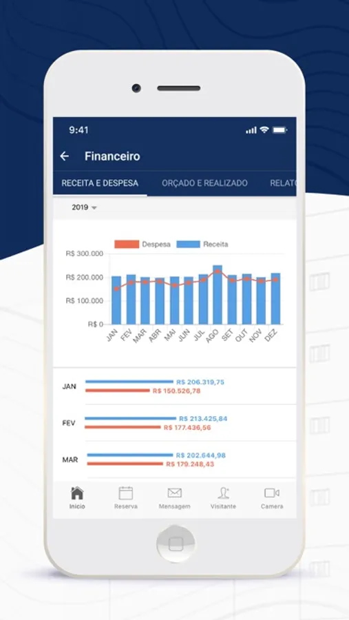 - comparativo de orçado versus realizado (gráficos e detalhamento)