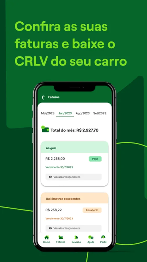 - Você no controle da sua assinatura. Acompanhe seu pedido, baixe o CRLV, consulte faturas, datas de vencimento e multas;