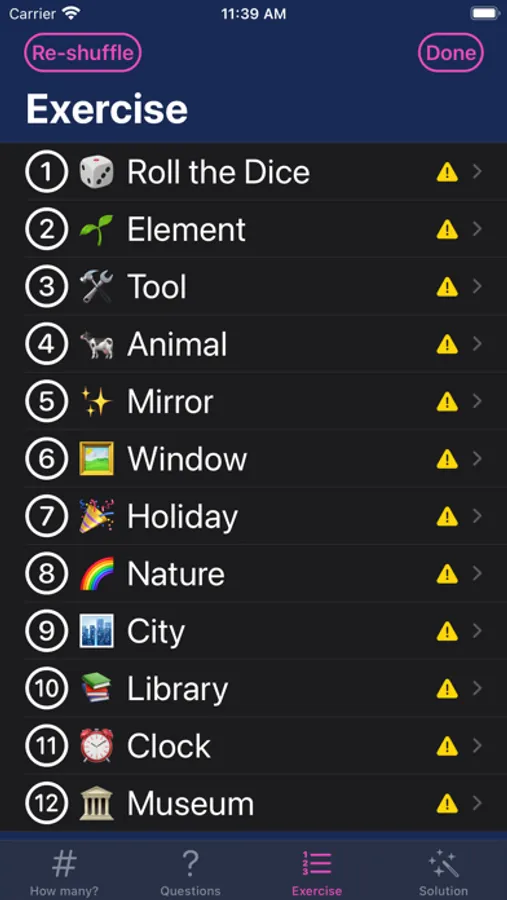 • Accept the randomized prompts selected for you or hit Re-shuffle