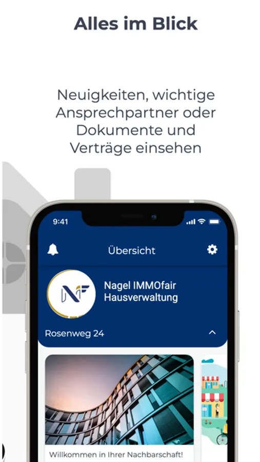 Willkommen in der digitalen Welt von Nagel IMMOfair! Hier erhalten Sie als Eigentümer und Mieter 24/7 alle relevanten Informationen rund um Ihre Immobilie!