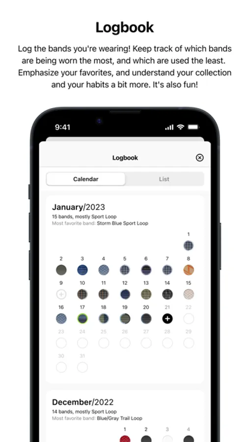 * Logbook :: Log the bands you're wearing! Keep track of which bands are being worn the most, and which are used the least and might need some more of your attention. A simple tool, which emphasizes your favorites, and helps you to understand your collection and your habits a bit more. It's also fun!