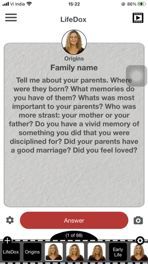 * Deepen your connection with family and friends - The resulting LifeDox video could be one of the most memorable things you share with your family and friends giving them an opportunity to get to know you and what you have gone through and a much deeper way.