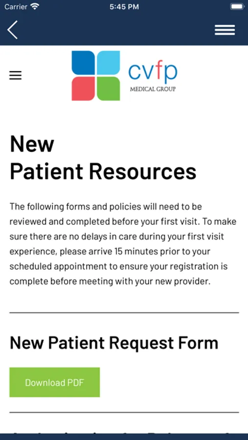 Welcome to the CVFP Medical Group app! This app serves as a way of keeping you