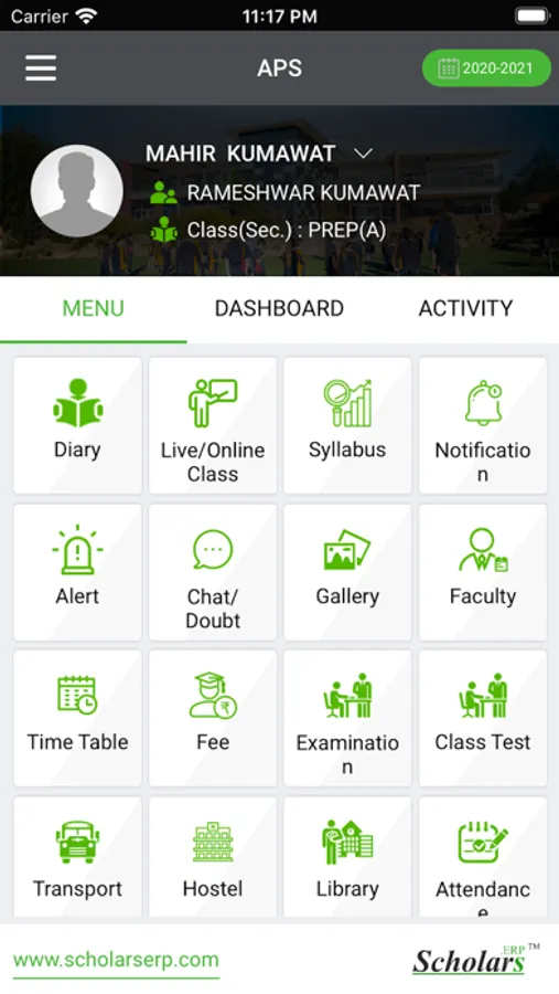 • Attendance status: Shows the days the student has been present, absent and on leave along with school holidays in a particular month.