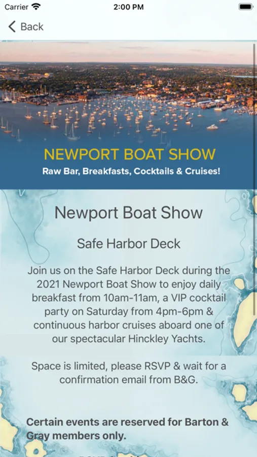 Barton & Gray Mariners Club's App for members to explore membership, Crew to manage their yachts and outings, and friends to learn more about the club. Members can explore membership and contact the Club, and manage your schedule and outings. Crew members can see their schedules, file Captain Reports, submit Punch-list items and run inventory of all provisions. Friends of the Club can see our yachts, harbors, and benefits of membership, in addition to inquiring about membership.