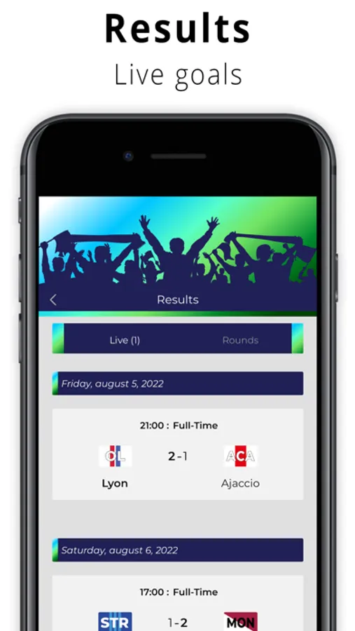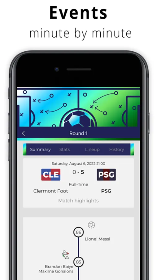 - Follow the matches in LIVE mode. All the events of the match: result, goals, cards, etc.