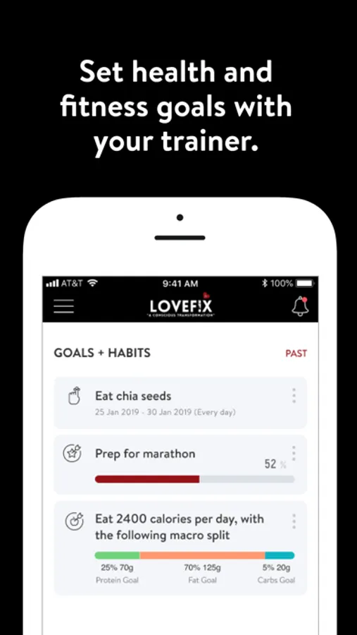 With the LVFX LOVEFIX App, you can start tracking your workouts and meals, measuring results, and achieving your fitness goals, all with the help of your personal trainer.