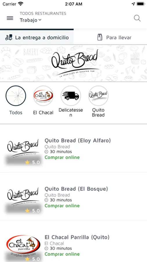 En esta aplicacacion podras disfrutar de tu restaurante y panderias favoritas en un solo lugar. La aplicación te permite escoger productos de El Chacal Parrilla, El Chacal Deli y Quito Bread Co. a la vez y que sean entregados directamente a tu hogar.