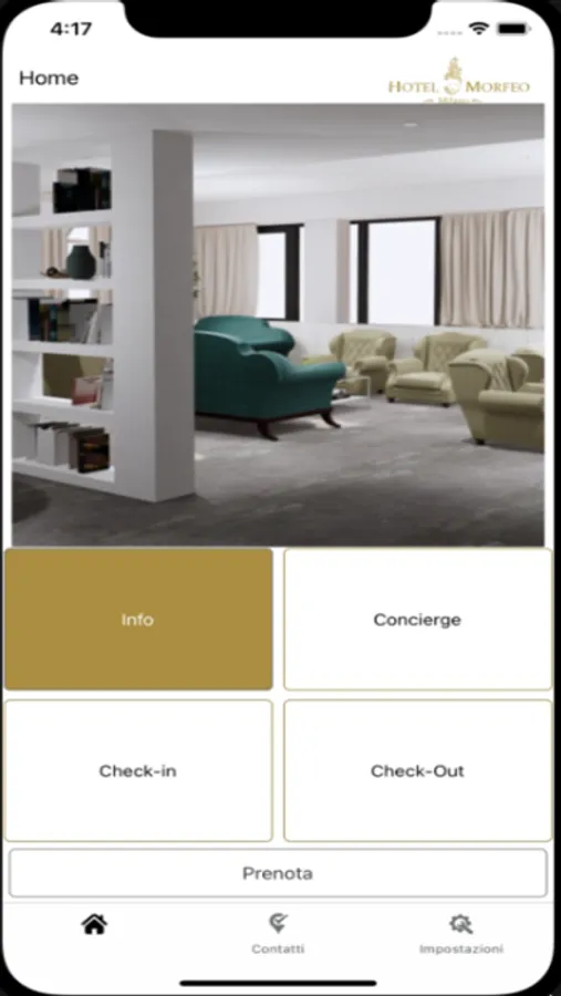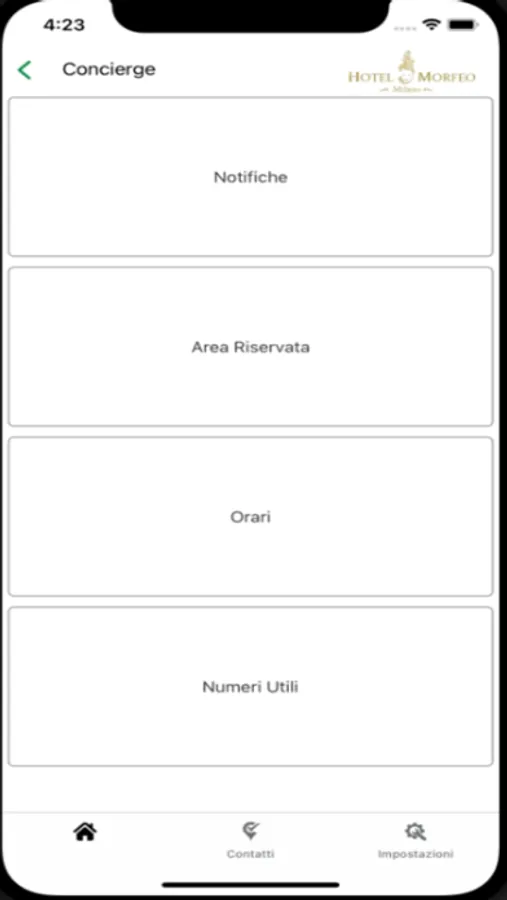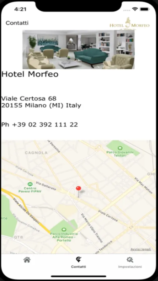 Hotel Morfeo Milano is a app that allow our guest to have a better experience in our locationb. With the App they can have a lot information like general info, room pictures and description and also, if enabled by login and password, thay can have advanced features like the control of the bill and reservation and more. The manager can dynamically update the information contents of the structure. The app may interact by web services with hotel PMS, transforming becoming a centralized container of functions and tools available to the Customer.