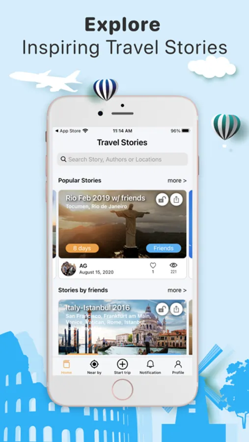 Share your stories and experiences with friends, family or with the world. Follow other travelers and get inspired from them, discover new places.