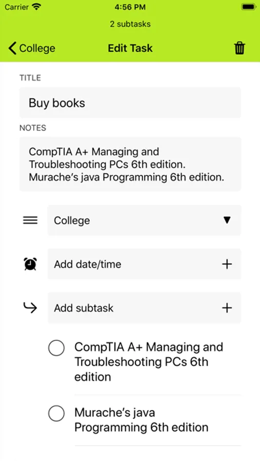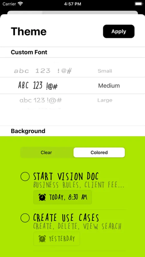 Extend your tasks with notes, sub tasks, reminders, and custom fonts.