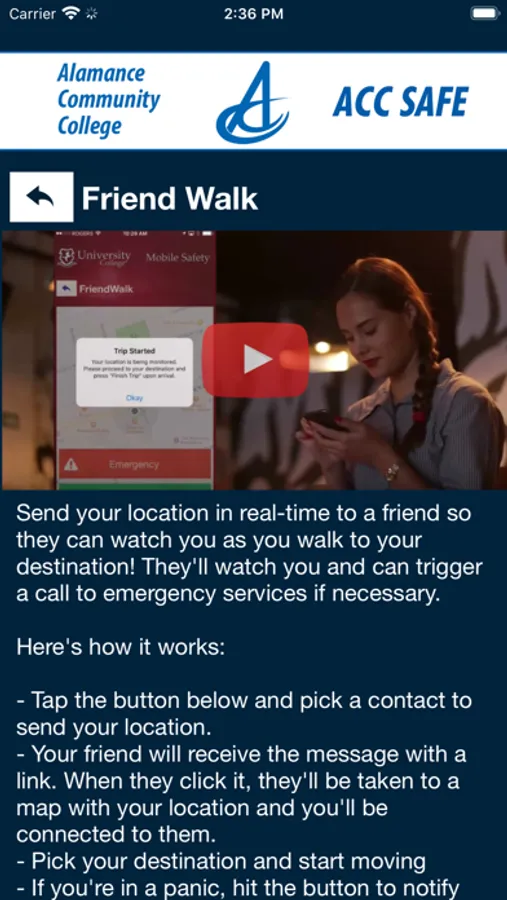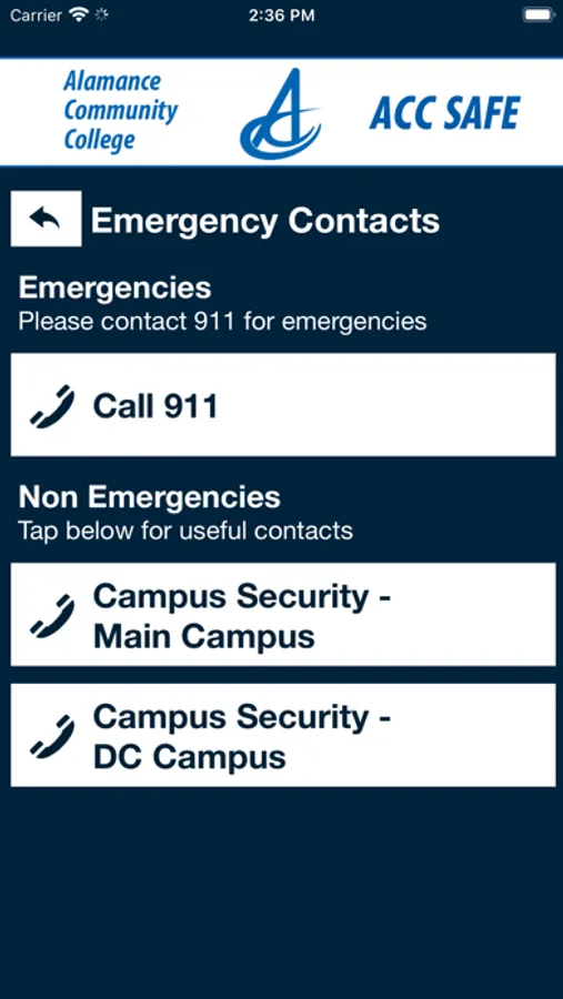 - Safety Notifications: Receive instant notifications and instructions from Alamance Community College safety when on-campus emergencies occur.