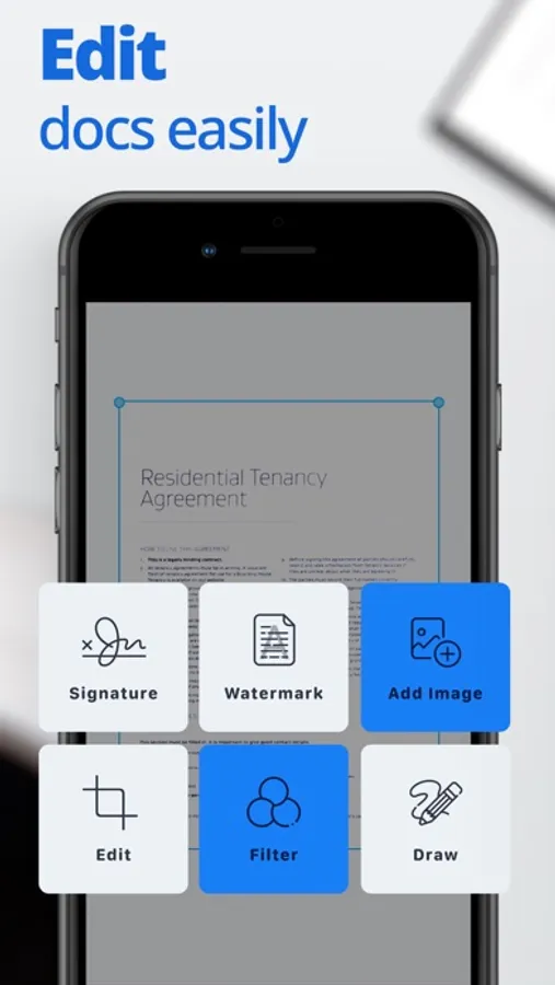 The app works exactly like a regular office scanner, but without all that extra equipment. Attend to your scanning needs on the go, without any delay. Scan documents, certificates, notes, photos, pictures, and more, and transform them into shareable PDF files.