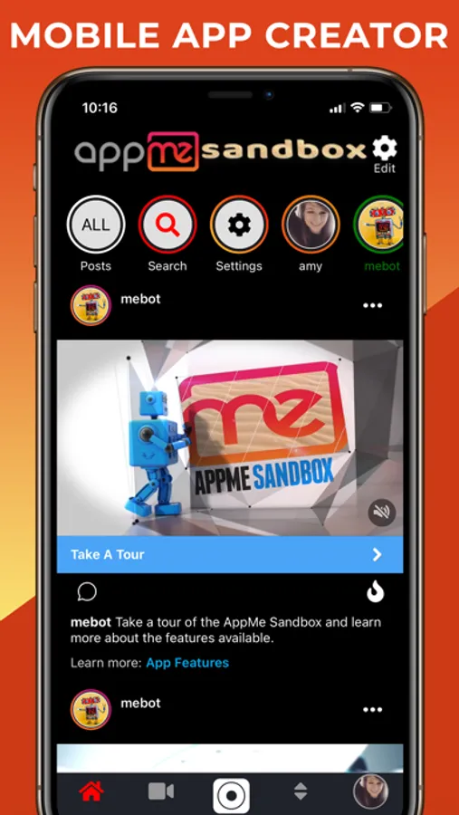 AppMe's user-friendly app builder makes it possible to build your own mobile app without knowing how to code. The whole process is all done through the AppMe mobile app without you having to write a single line of code.