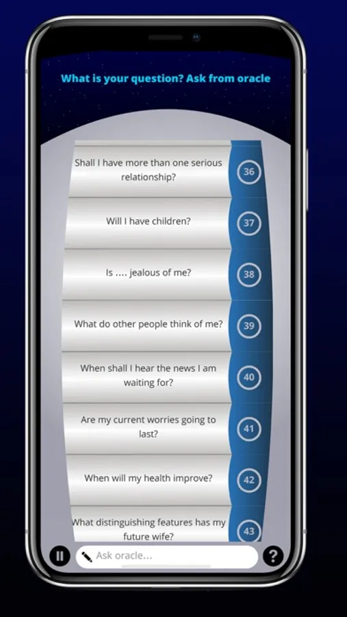 This application applies thirteen symbols to entertain you. You can ask questions and important issues of your life using the thirteen tokens on a magic globe.