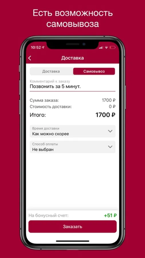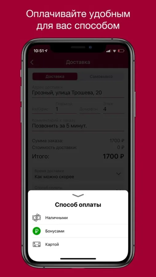Оплачивайте заказ как наличным так и безналичным способом прямо из приложения.