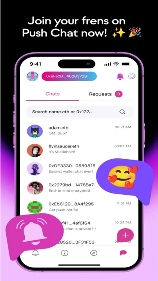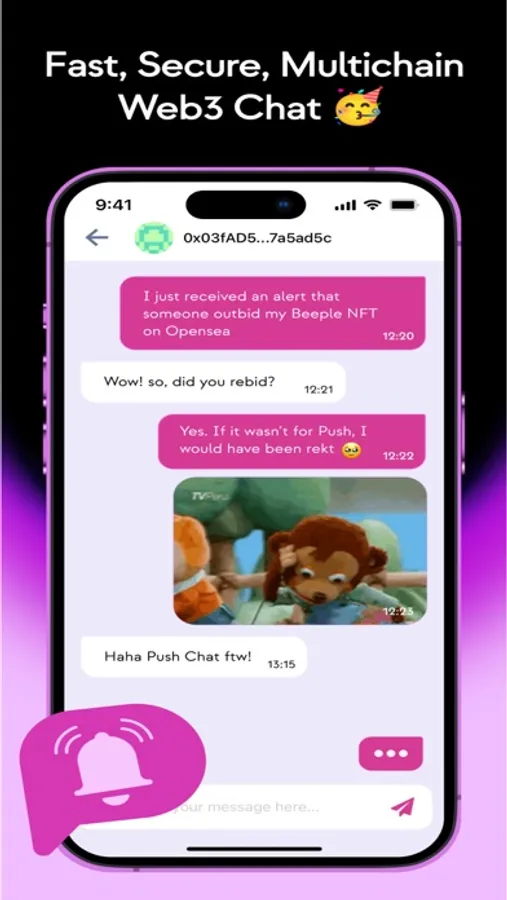Message any web3 wallet address on the go from your phone! Push Chat gives you access to instant messaging between any two web3 wallets.