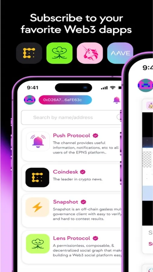 Subscribe to the channels of your favourite dapps and select notification preferences for the notifications vital to you. Whether it's crypto news or portfolio updates, whatever notifications you're looking for, you can get alerts and status updates directly to your phone.