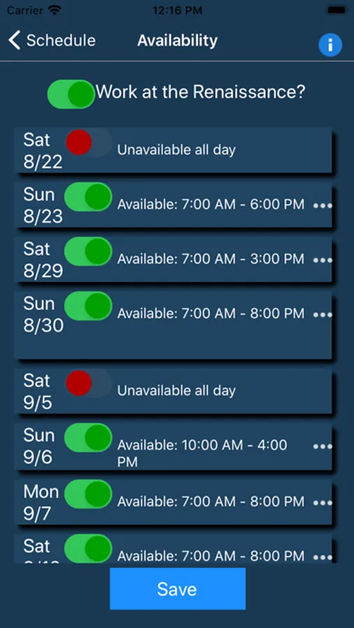 Hussong Concessions has stands at the Minnesota Renaissance Festival and the Minnesota State Fair. This app is designed to allow employees to sign up to work and maintain their profile and availability. It also allows employees to review their scheduled work hours and send messages to managers and other employees.
